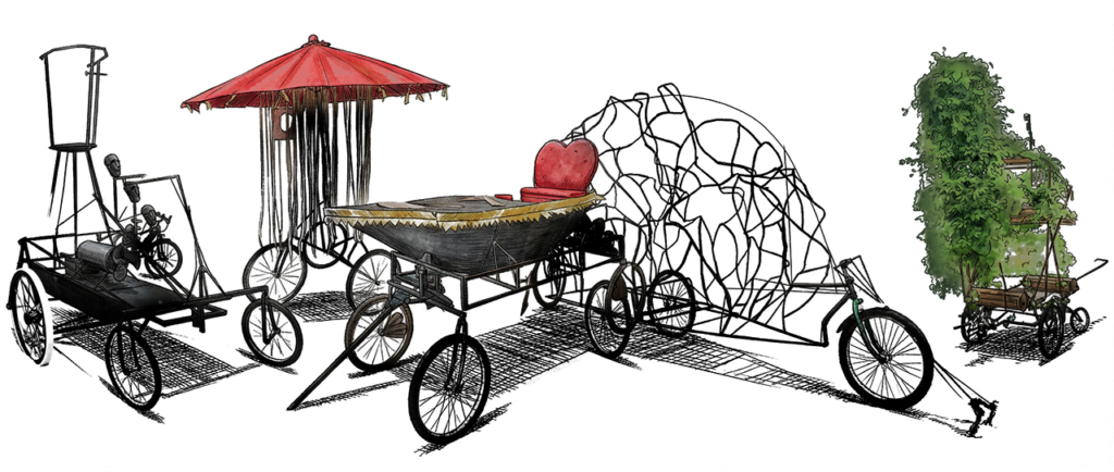 Pas besoin non plus de vouloir faire un char : les éléments de cortège peuvent être très variés (tissus, gonflables, papier, etc.).