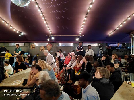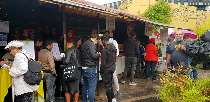 Au programme de ce grand bal métèque : expositions, fanfare, Batucada, contes et poésie, clown et massage chinois, sérigraphie, un bureau des engagements solidaires pour venir à la rencontre d’associations d’aide et de solidarité avec les migrants et trouver sa façon de militer mais aussi des concerts avec aux commandes AÄLMA DILI et Bim Bam Orchestrapour un GRAND SOUL TRAIN